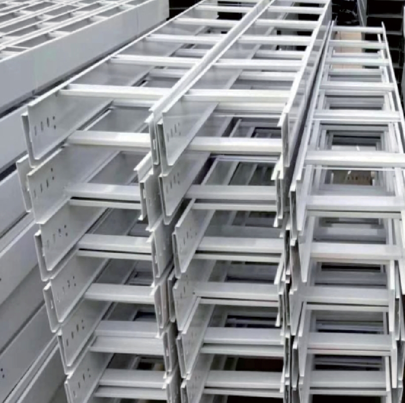 8.耐火电缆桥架:耐火桥架通过在桥架表面涂装防火涂料来实现防火效果。具有耐火、耐油、耐腐蚀等特点,保护电缆不受损害。常采用玻璃纤维增强材料和无机黏合剂复合的防火板与金属骨架复合,这种材料组合使得桥架在高遇下不会燃烧,从而有效隔离火源。