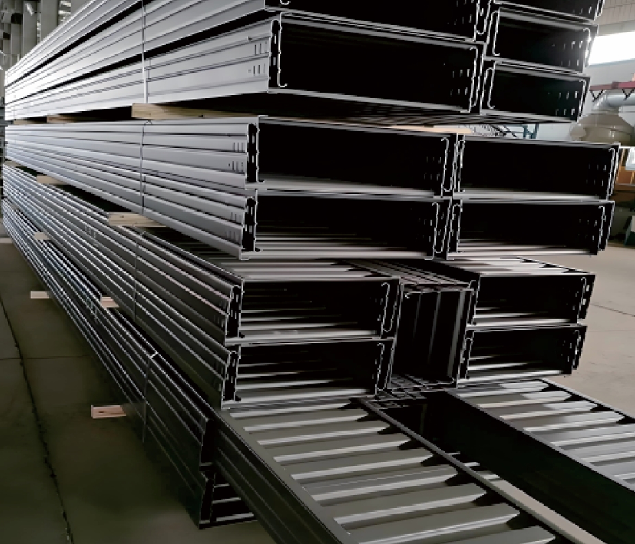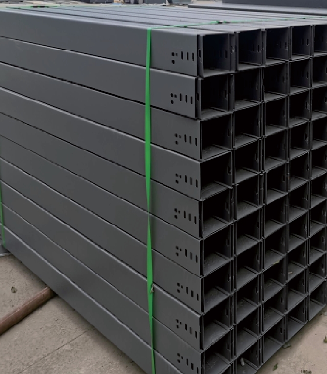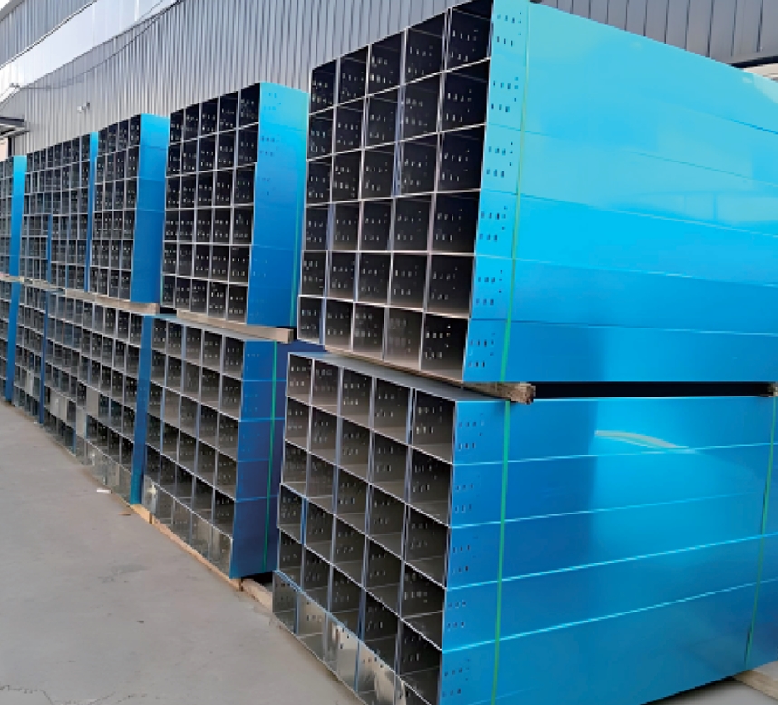 7.喷塑电缆桥架:表面采用静电粉末喷涂工艺进行处理,并赋予其特定的颜色。便于区分不同电压等级(强电、弱电)不同系统(如电力、通信、消防、安防等),极大降低了维护、检修扩容时误操作的风险,提升了电气系统的安全性和管理的便捷性。