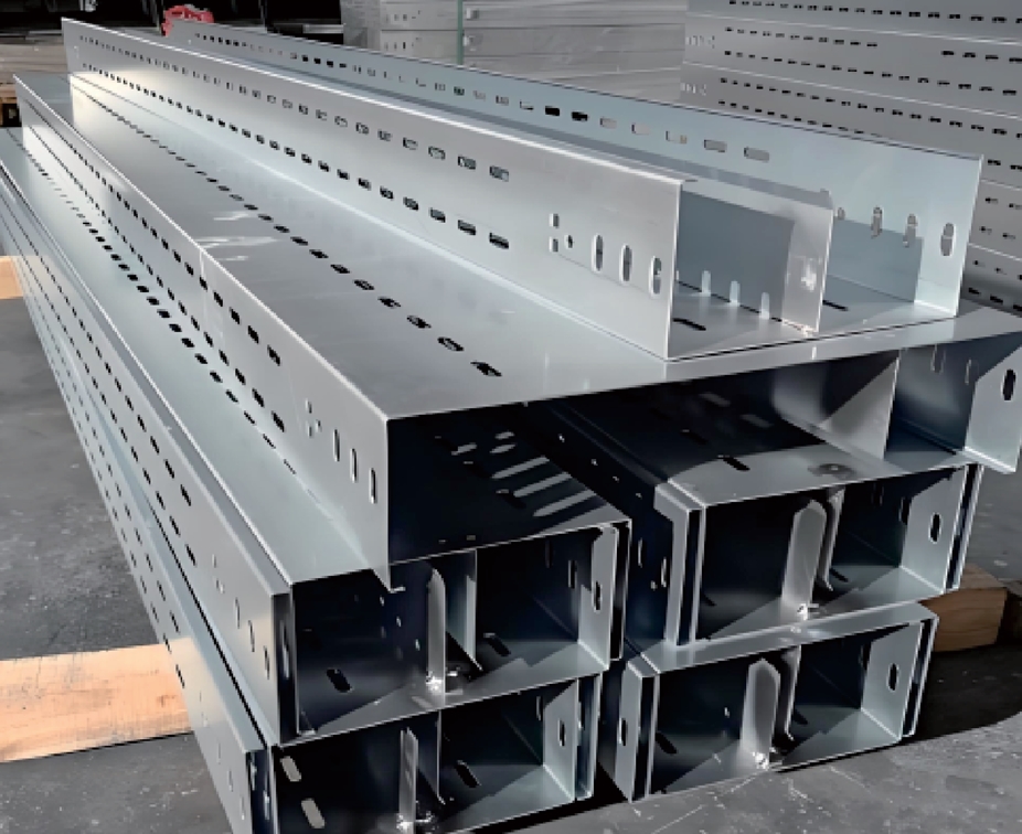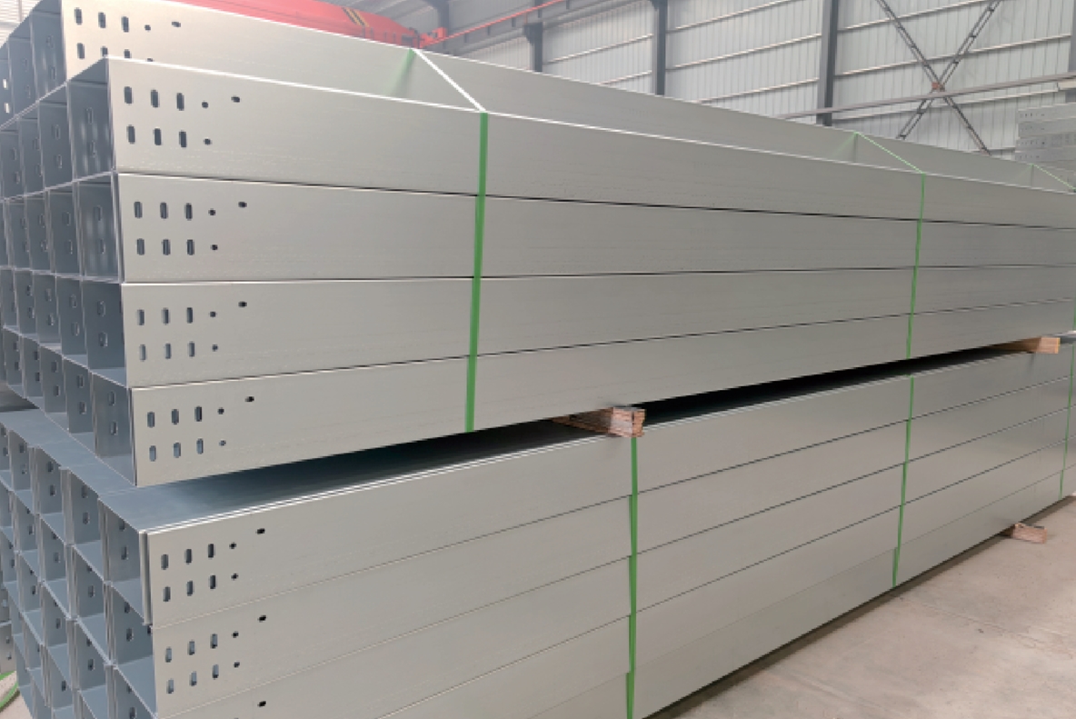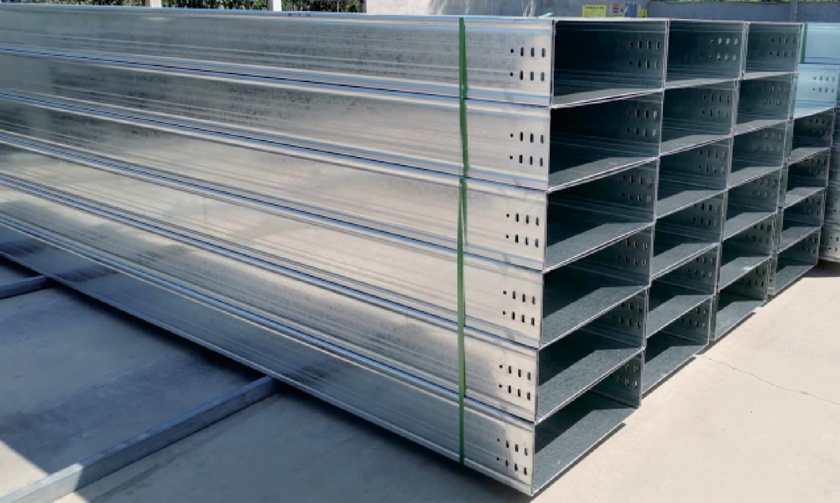 9.节能电缆桥架:主要采用钢板模压工艺,通过冲压和模压成型制作而成,比普通桥架在同等厚度的条件下承载能力更强,更加节能减材,具有结构坚固、耐腐蚀、防火、防潮,安装维护方便等特点。其表面防护处理可采用防火喷塑、热漫锌、VCI等,材质可选择镀锌板、304 不锈钢、铝合金等,能够在潮湿、高温、酸碱等恶劣环境下长期使用,大大降低了维护成本。