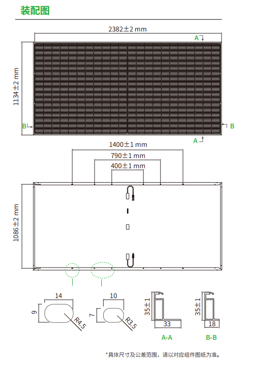 | 组件尺寸(参考装配图) | 2382±2mm(长)、1134±2mm(宽)等,其他关键尺寸如 1400±1mm、790±1mm 等,具体以对应组件图纸为准 |