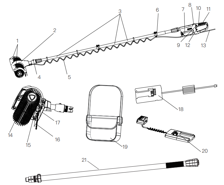 手柄、电池包、延长杆、机头均可独立拆卸安装,便于包装运输及产品功能拓展。